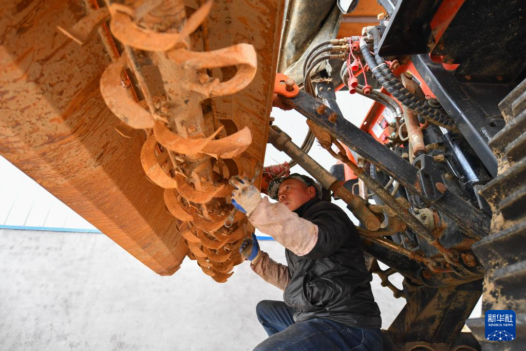 2月25日,在湖南省益陽(yáng)市赫山區(qū)農(nóng)田謀士水稻專業(yè)合作社,工作人員在檢修農(nóng)機(jī)。