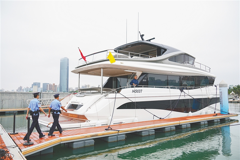 “這是本屆消博會首艘進(jìn)境游艇展品,貨值超2800萬元?!焙?诟酆jP(guān)相關(guān)負(fù)責(zé)人表示,海關(guān)在通關(guān)現(xiàn)場設(shè)立“消博會通關(guān)綠色通道”,建立全天候服務(wù)機(jī)制,接受參展企業(yè)預(yù)約通關(guān),推出“隨到隨驗”等便利通關(guān)措施,保障進(jìn)境展品實現(xiàn)“零延時”通關(guān)。