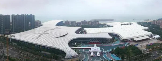 這是4月11日拍攝的第四屆中國國際消費(fèi)品博覽會(huì)主會(huì)場(chǎng)海南國際會(huì)展中心(無人機(jī)照片)。新華社記者 郭程攝
