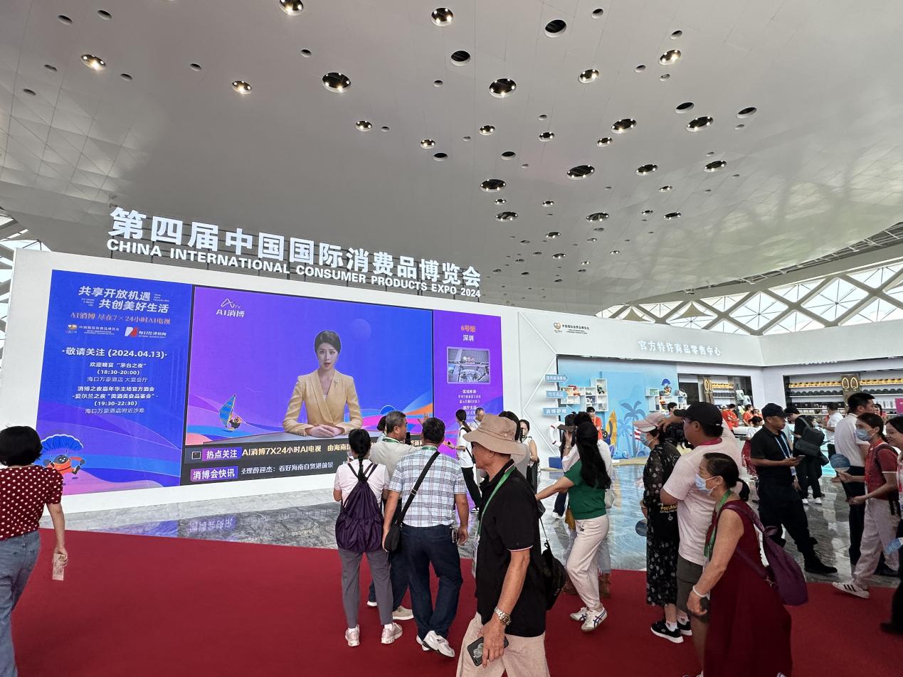 與往屆不同,第四屆消博會把握全球科技發(fā)展大勢,在國際傳播方面創(chuàng)新探索了打造“AI消博”的新方式,即:通過全方位、全流程、全周期的AI技術(shù),實時生產(chǎn)文字稿件和視頻內(nèi)容,進(jìn)行全網(wǎng)分發(fā),并運用AI電視進(jìn)行線上線下同步直播。