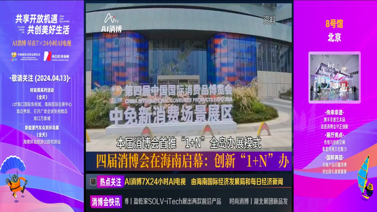 “第四屆中國國際消費品博覽會于4月13日在??陂_幕……”4月13日上午,大屏上不斷滾動播出著消博會信息,以及國內(nèi)外參展商們的布展動態(tài)和場館亮點,引來很多過往的觀眾駐足觀看。