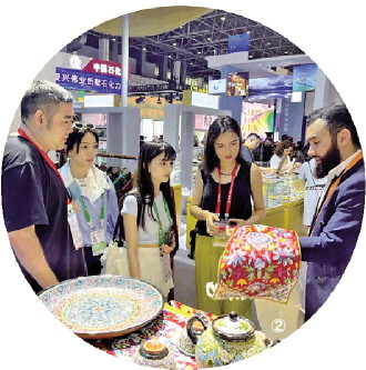 圖為烏茲別克斯坦參展商阿森貝克向中國(guó)客商介紹烏茲別克斯坦產(chǎn)品。新華社記者 程瀟 攝