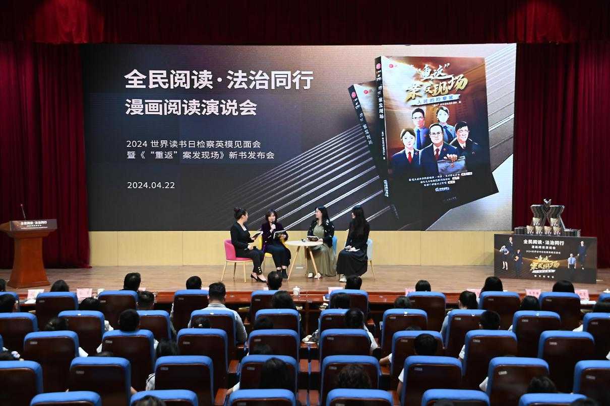 4月22日,“全民閱讀·法治同行”漫畫閱讀演說會——2024世界讀書日檢察英模見面會暨《“重返”案發(fā)現(xiàn)場·人民的檢察官》漫畫新書發(fā)布會在京舉行。