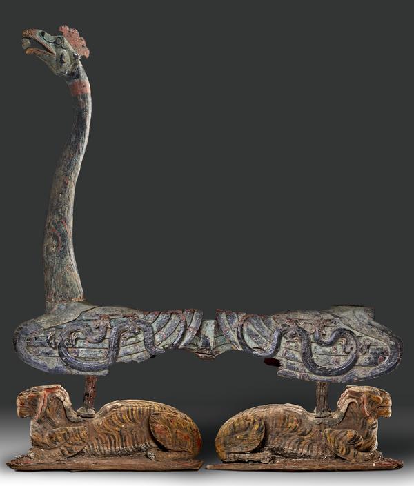 武王墩一號(hào)墓出土的鳳鳥虎座鼓架。