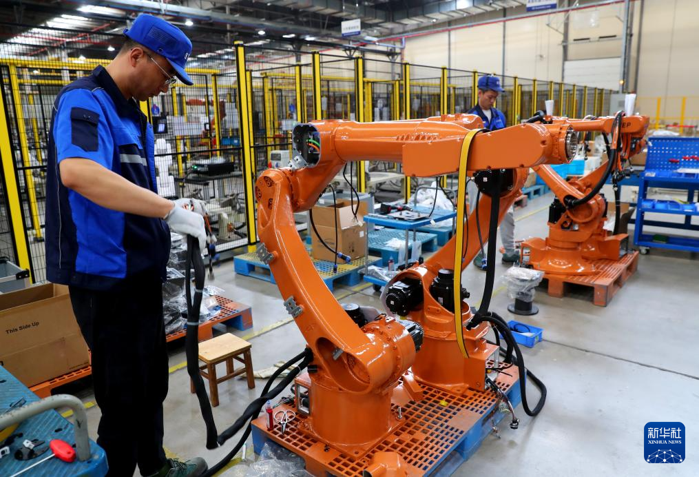 5月23日,工作人員在上海新時(shí)達(dá)機(jī)器人有限公司位于嘉定的智能工廠內(nèi)忙碌。新華社記者 龔兵 攝