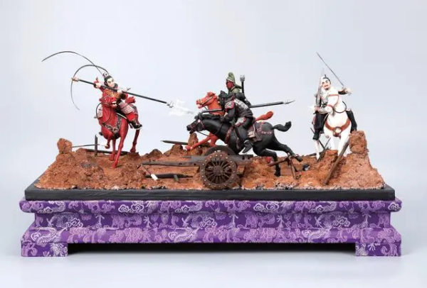 為了讓面塑順利“數(shù)字化”,郎佳子彧還創(chuàng)新改變了一些制作流程。比如,角色手握的兵器,老藝人都是制作完成后直接組合,現(xiàn)在為了方便細(xì)節(jié)掃描,需要提前預(yù)留手部握兵器的位置,風(fēng)干后再放回到角色手里?!按送猓捎诖龗呙璧摹慵龀鰜聿荒芰⒓窗惭b并固定于沙盤場(chǎng)景中,所有人物的動(dòng)作、神態(tài)都要預(yù)先在腦海中構(gòu)思成熟。這對(duì)我復(fù)刻的技術(shù)提出了新的要求。完成《三英戰(zhàn)呂布》的復(fù)刻與數(shù)字化,我花費(fèi)了整整30天?!崩杉炎訌f。