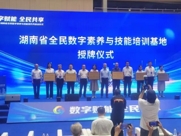 現(xiàn)場為湖南省全民數(shù)字素養(yǎng)與技能培訓(xùn)基地代表授牌