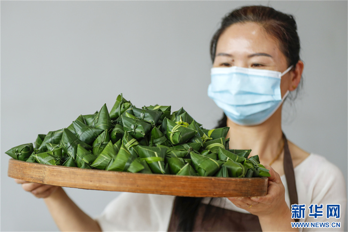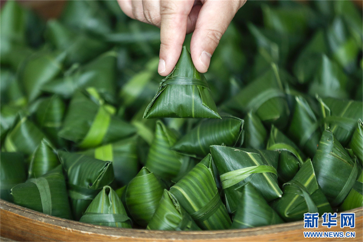 端午臨近,在安徽省黃山市祁門縣古溪鄉(xiāng)際源村,茶工以祁門紅茶為“餡料”,用傳統(tǒng)包粽子的方法,純手工制作“粽茶”?!棒詹琛毙∏闪岘嚕莩鰜淼牟铚?,既有箬葉香,又有紅茶香,好看又好喝的“粽茶”,深受消費者的喜愛。新華網(wǎng)發(fā)(施亞磊 攝)