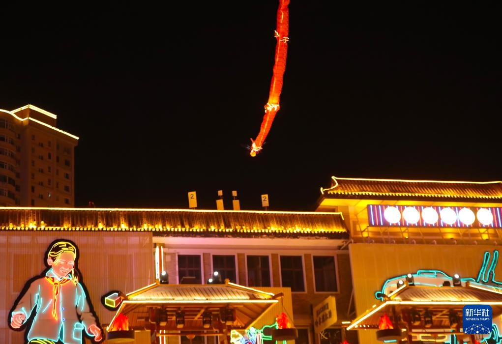 在沈陽老北市景區(qū)拍攝的“龍鳳呈祥”演藝場景(2月10日攝)。新華社記者 楊青 攝