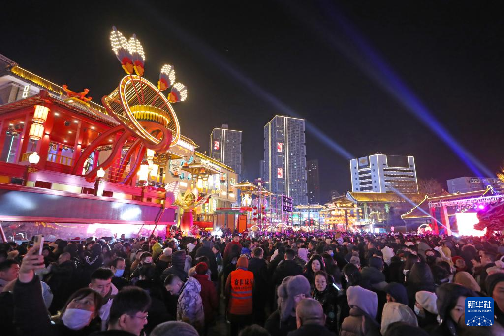 市民和游客在沈陽老北市景區(qū)內(nèi)游玩(2月10日攝)。新華社記者 楊青 攝