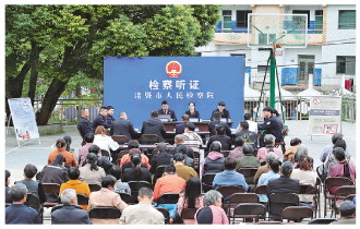 2022年11月25日,浙江省諸暨市人民檢察院在東和鄉(xiāng)章梅塔村,對郭某涉嫌危害國家重點(diǎn)保護(hù)植物案進(jìn)行公開聽證。 本報通訊員 何若愚 攝