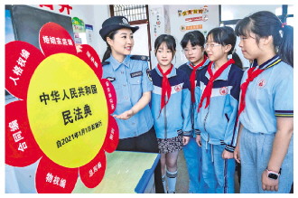 五月十四日,安徽省含山縣司法局普法工作者走進(jìn)安徽師范大學(xué)附屬含山實(shí)驗(yàn)小學(xué)開展“民法典進(jìn)校園 法律保駕護(hù)航”主題教育活動(dòng)。 本報(bào)通訊員 歐宗濤 攝