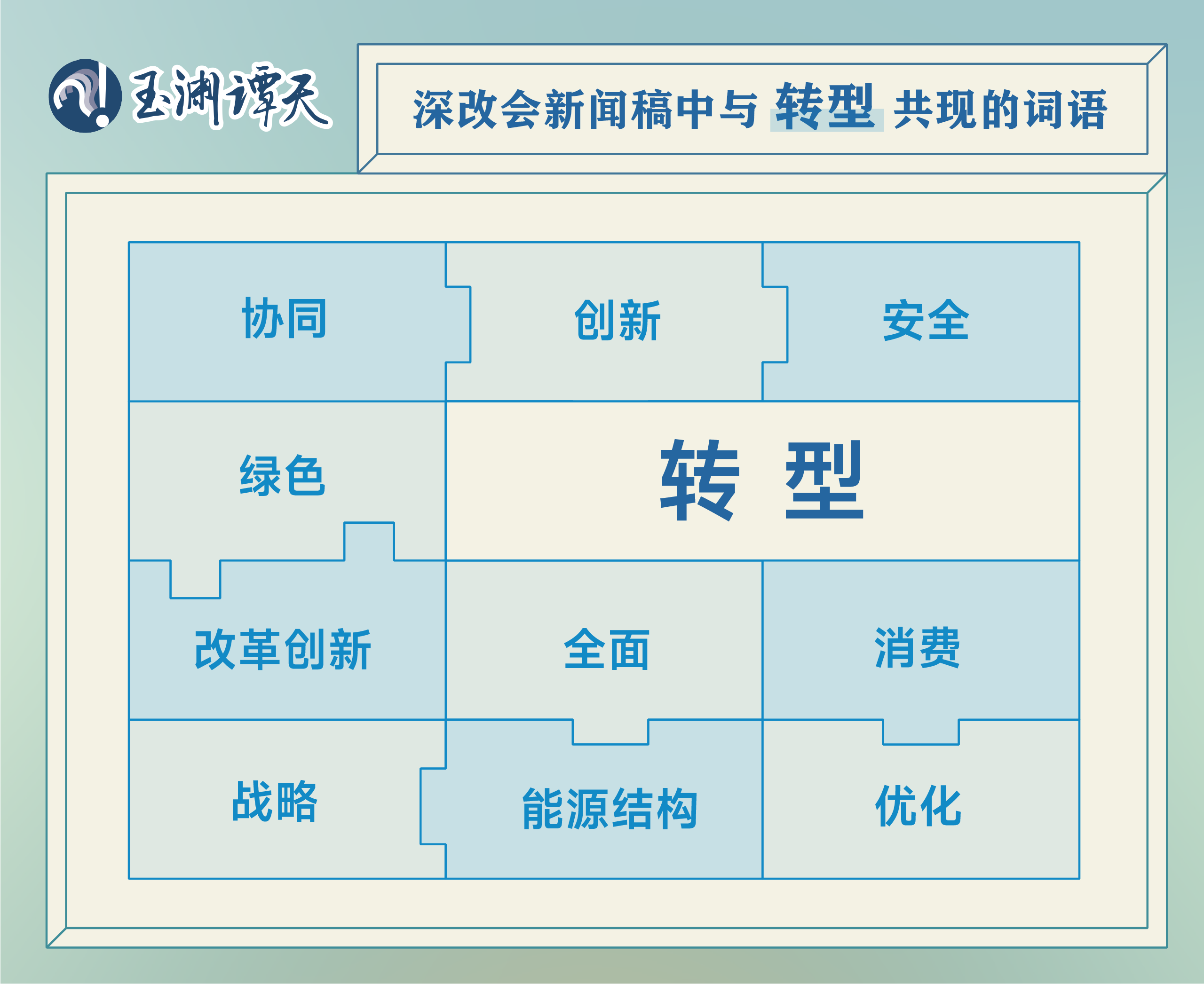深改會的新聞稿中,伴隨“綠色轉(zhuǎn)型”出現(xiàn)的,還有一連串“轉(zhuǎn)型”——全面轉(zhuǎn)型、協(xié)同轉(zhuǎn)型、創(chuàng)新轉(zhuǎn)型、安全轉(zhuǎn)型;同時還涉及了支撐綠色轉(zhuǎn)型的“消費轉(zhuǎn)型”,以及財稅、金融、投資、價格政策和相關(guān)市場化機(jī)制等政策體系的健全。