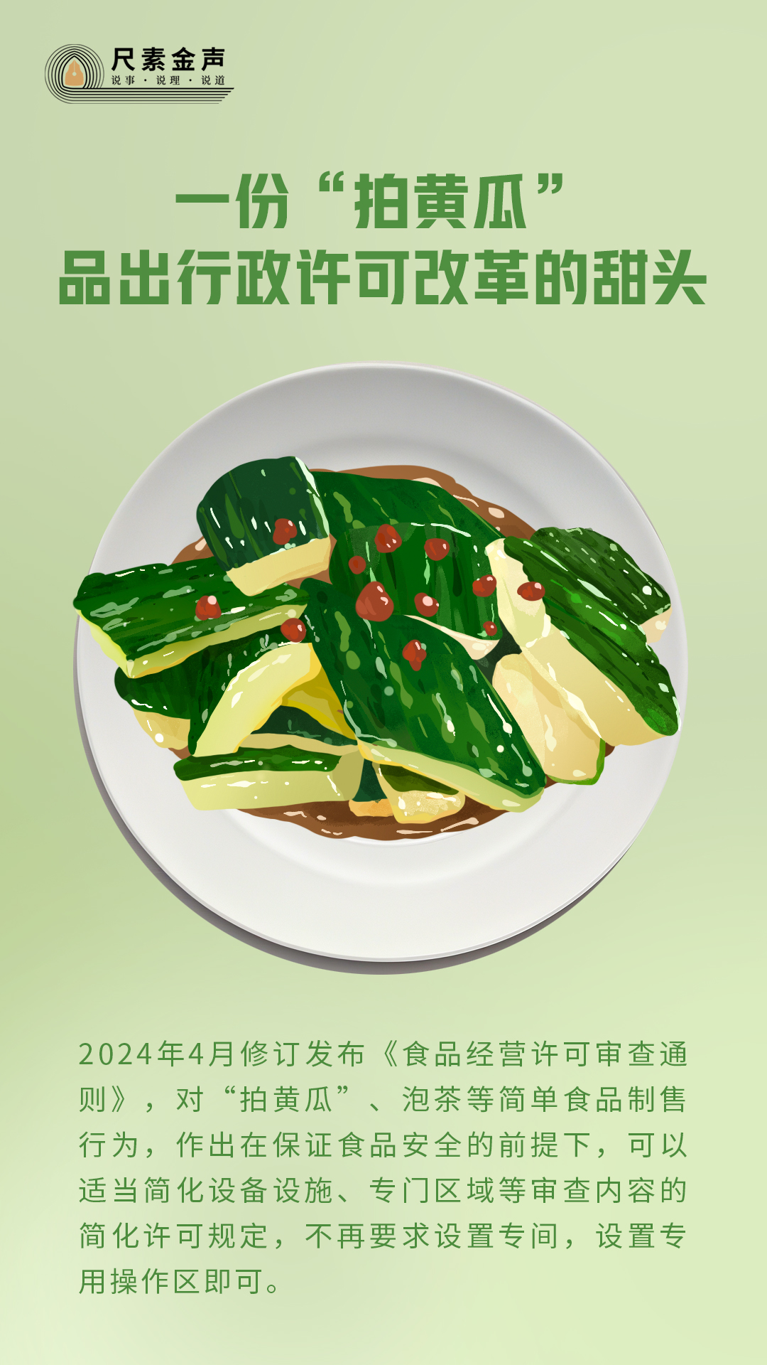 結(jié)合餐飲業(yè)實(shí)際,考慮中小經(jīng)營主體和消費(fèi)者的訴求,科學(xué)評估食品安全風(fēng)險,去年6月,市場監(jiān)管總局修訂發(fā)布《食品經(jīng)營許可和備案管理辦法》,今年4月修訂發(fā)布《食品經(jīng)營許可審查通則》,對“拍黃瓜”、泡茶等簡單食品制售行為,作出在保證食品安全的前提下,可以適當(dāng)簡化設(shè)備設(shè)施、專門區(qū)域等審查內(nèi)容的簡化許可規(guī)定,不再要求設(shè)置專間,設(shè)置專用操作區(qū)即可。各地市場監(jiān)管部門立足當(dāng)?shù)貙?shí)際優(yōu)化“拍黃瓜”經(jīng)營許可條件,相繼出臺相關(guān)食品經(jīng)營許可和備案管理實(shí)施細(xì)則。比如,修訂的《上海市食品經(jīng)營許可和備案管理實(shí)施辦法》已于5月10日正式實(shí)施,明確加工制作植物性冷食類食品(不含非發(fā)酵豆制品),可申請簡單制售經(jīng)營項(xiàng)目,在保證食品安全的前提下,可僅設(shè)置專區(qū)。