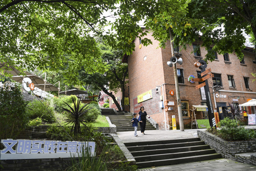 ↑7月15日,游客在重慶市江北區(qū)五里店街道鶯花巷合作村青年國際社區(qū)游覽、拍照。