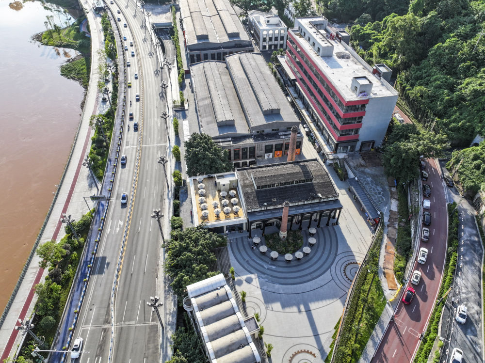 ↑這是7月15日拍攝的重慶市江北區(qū)北倉文創(chuàng)街區(qū)一帶景象(無人機照片)。