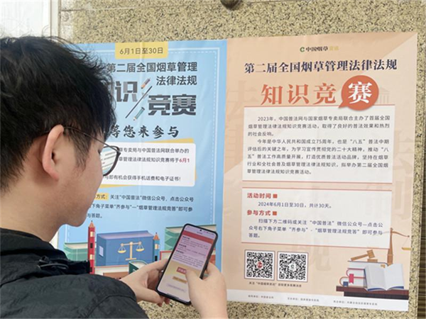 為推動(dòng)“八五”普法走深走實(shí),浙江省溫州市煙草專賣局以全國煙草管理法律法規(guī)知識(shí)競(jìng)賽活動(dòng)為契機(jī),創(chuàng)新普法宣傳形式,打造員工、零售戶、消費(fèi)者共同參與的立體化普法矩陣,持續(xù)提升普法“輻射面”,繪好普法“風(fēng)景線”,在全市掀起煙草專賣法律法規(guī)學(xué)習(xí)活動(dòng)熱潮,助力營(yíng)造全社會(huì)尊法學(xué)法守法用法的良好法治氛圍。