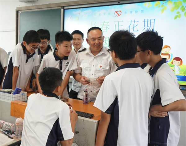 “你們看,這些形狀新奇的奶茶杯、可樂罐就是非法電子煙,里面往往添加了大量香精香料,有些不法分子甚至還會(huì)將毒品成分混在煙油中,人在吸食后會(huì)迅速上頭,對(duì)身體產(chǎn)生巨大傷害?!苯淌依铮N云縣煙草專賣局的普法志愿者正在為壺濱中學(xué)的同學(xué)們耐心講解奶茶杯、可樂罐等非法電子煙的外觀、成分、危害,引導(dǎo)學(xué)生提高警惕,遠(yuǎn)離電子煙傷害。