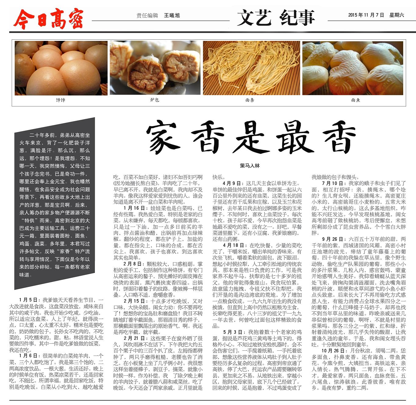 2015年11月7日,《今日高密》刊發(fā)《家香是最香》。