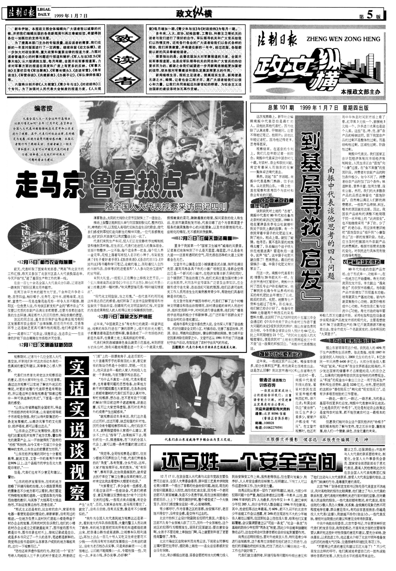 1999年1月7日,《法制日?qǐng)?bào)》刊發(fā)《實(shí)話實(shí)說(shuō)談視察》等一組專題報(bào)道。