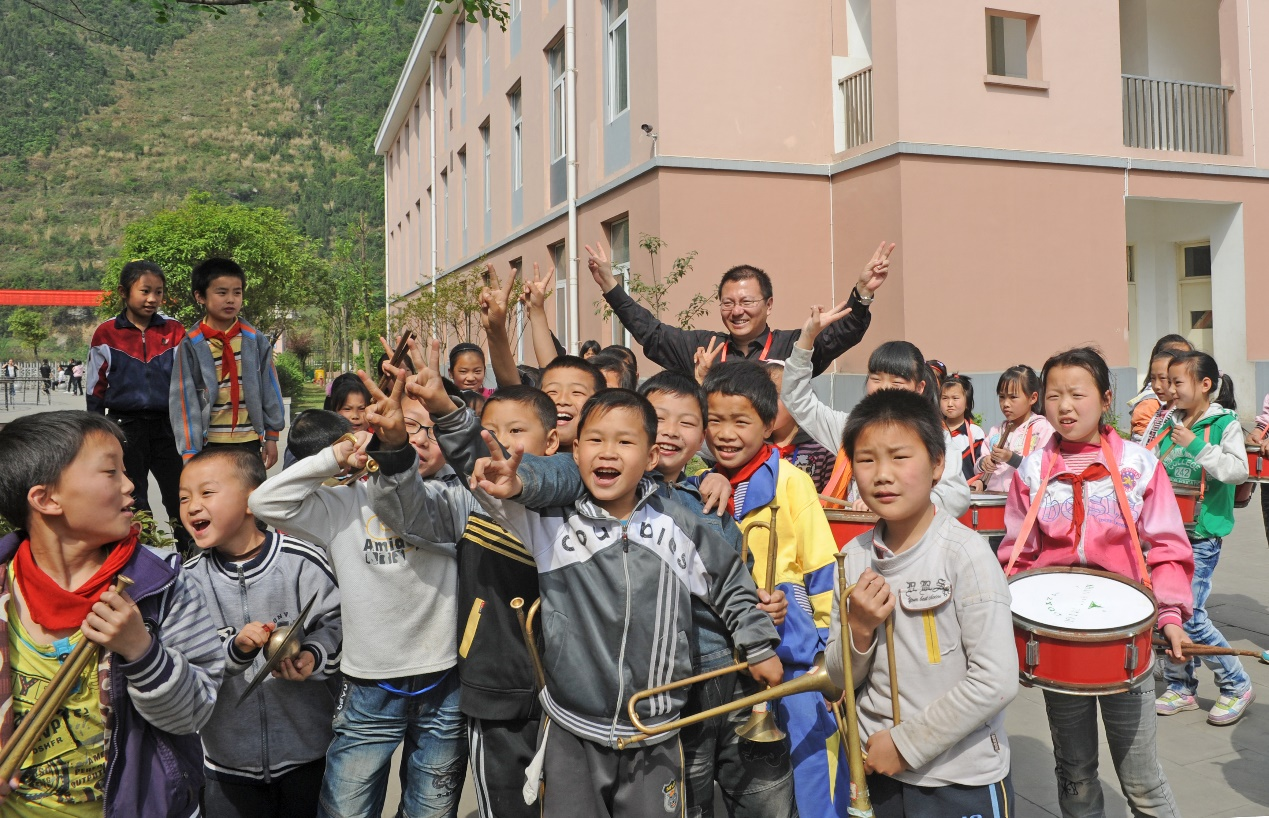 2011年4月,參加第四屆全國(guó)專(zhuān)家博客筆會(huì),采訪(fǎng)四川災(zāi)后重建成果時(shí)與孩子們?cè)谝黄稹?/span>