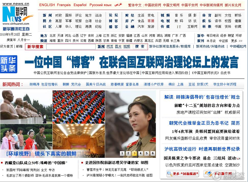 2010年9月28日,新華網(wǎng)在首頁(yè)頭條推出《一位中國(guó)博客在聯(lián)合國(guó)互聯(lián)網(wǎng)治理論壇上的發(fā)言》專(zhuān)題。