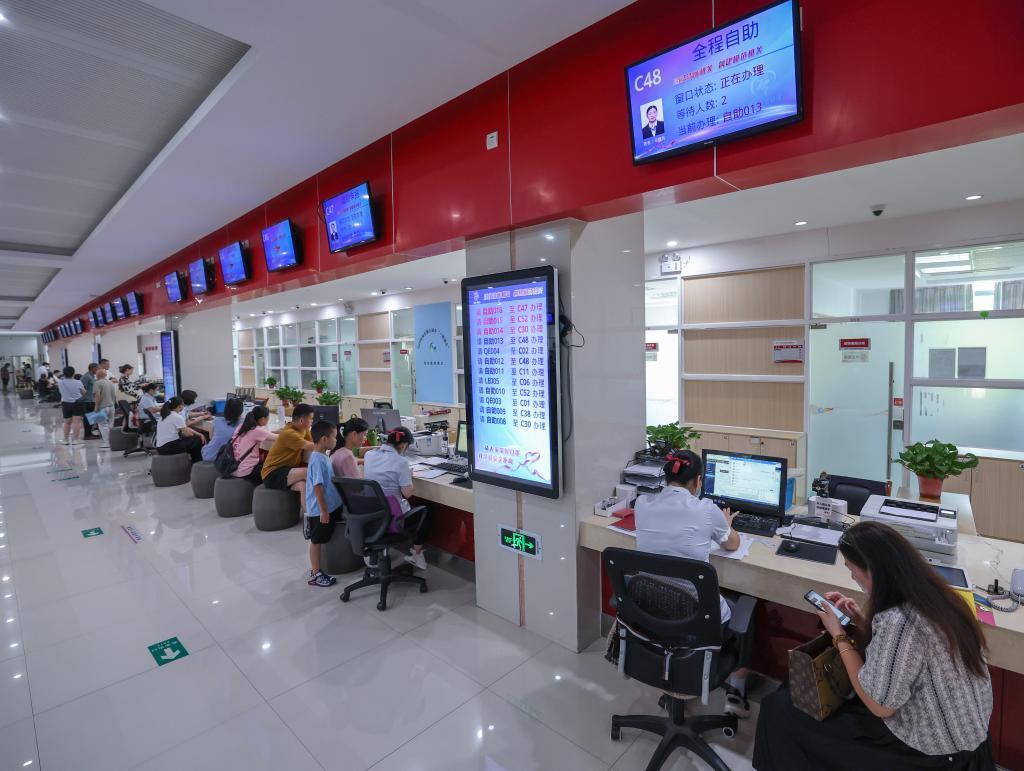8月20日,在嘉興市南湖區(qū)政務(wù)服務(wù)中心,群眾在無(wú)差別受理窗口辦理不動(dòng)產(chǎn)登記事項(xiàng)。新華社記者徐昱 攝