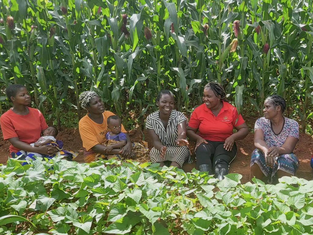 “中非科技小院”留學(xué)生庫(kù)瓦莉(右二)在馬拉維鄉(xiāng)村和農(nóng)民們一起討論中國(guó)“大豆—玉米間作技術(shù)”(2月5日攝)。新華社發(fā)(受訪者供圖)
