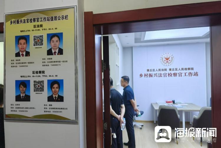 葉貴芬?guī)ьI采訪團參觀了村里的鄉(xiāng)村振興法官檢察官工作站,按照工作站值班公示,法官、檢察官各有兩名,分時段在村中駐站工作,為村民提供法律幫助。