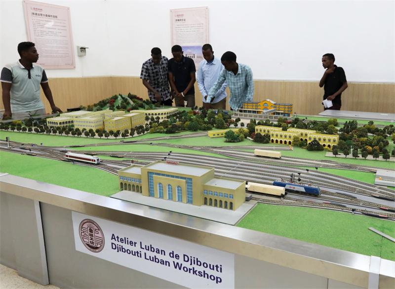 2022年9月19日,在位于吉布提首都吉布提市的吉布提工商學(xué)校,學(xué)生在魯班工坊鐵道運(yùn)營沙盤教學(xué)區(qū)學(xué)習(xí)。新華社記者 董江輝 攝