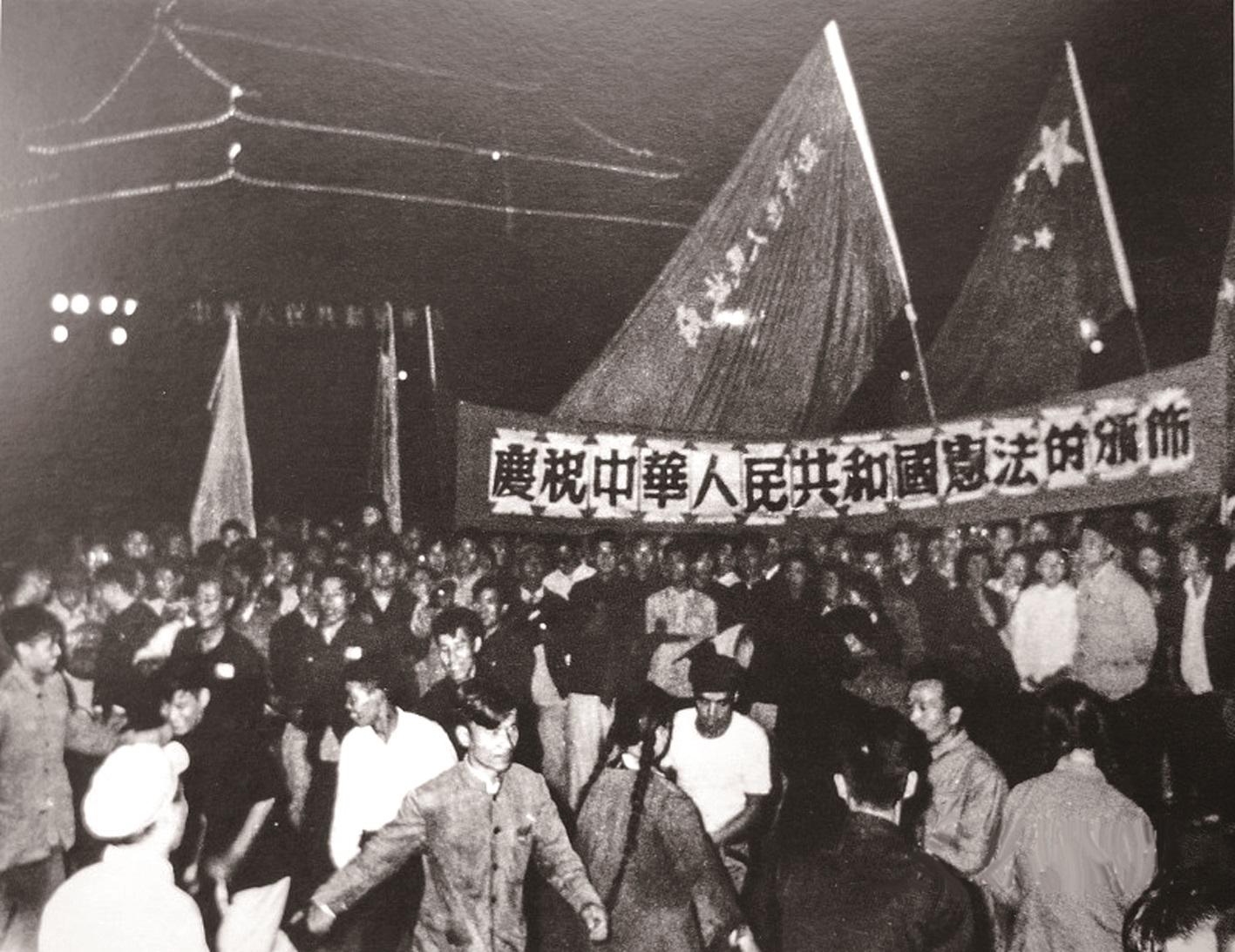 1954年9月21日,首都群眾慶?!吨腥A人民共和國憲法》頒布。 新華社發(fā)