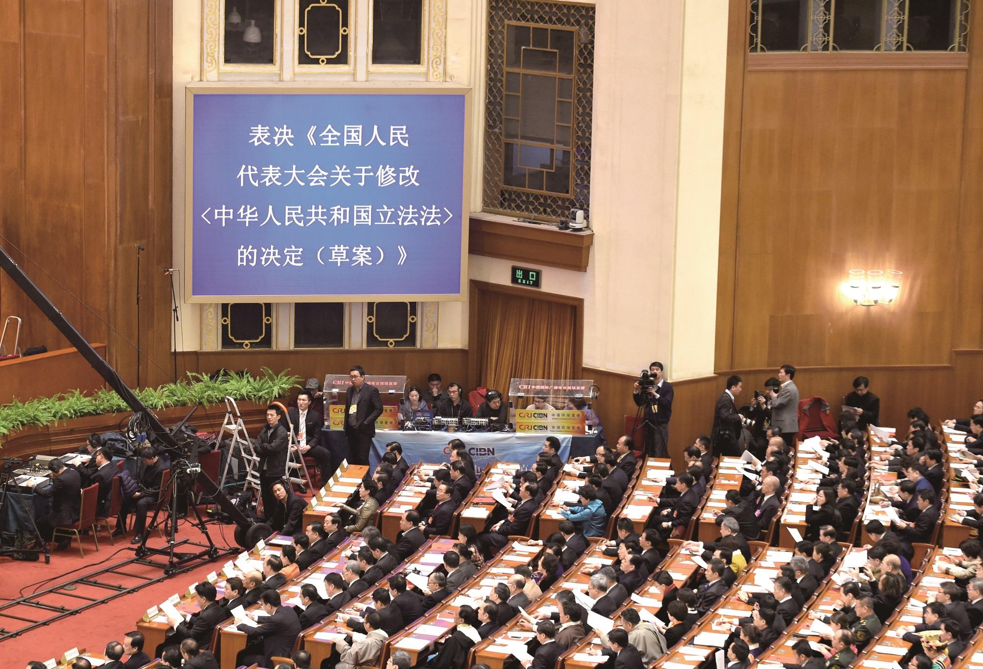 2015年3月15日,十二屆全國人大三次會議表決通過關(guān)于修改立法法的決定。 本報記者 楊晉峰 攝