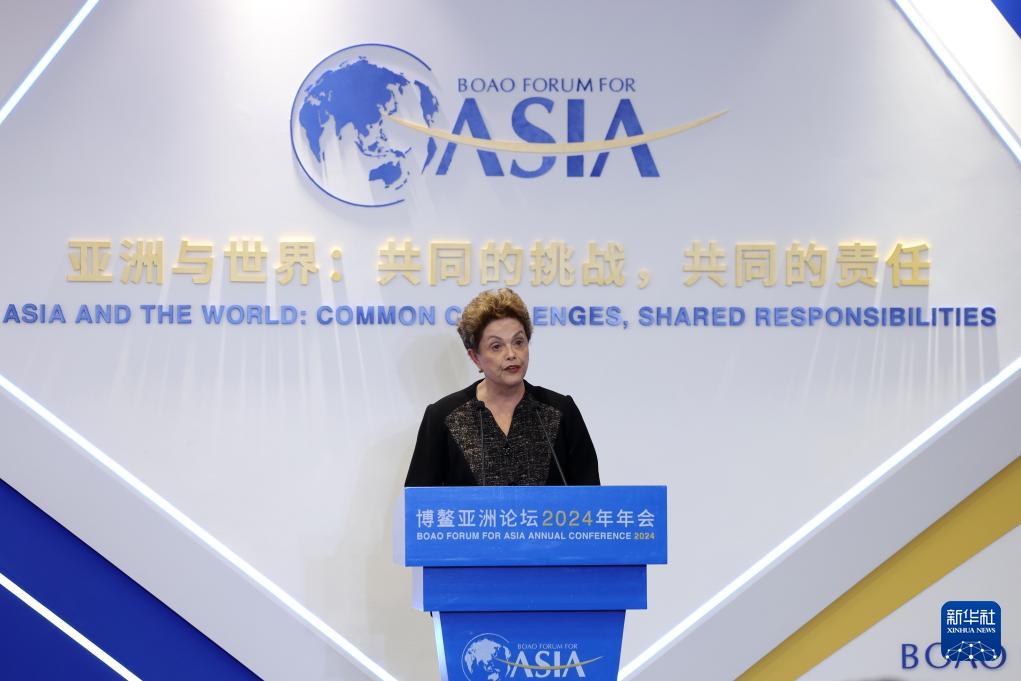 ??2024年3月27日,新開發(fā)銀行行長迪爾瑪·羅塞芙在博鰲亞洲論壇2024年年會“全球南方的興起”分論壇上致辭。 新華社記者 唐如峰 攝