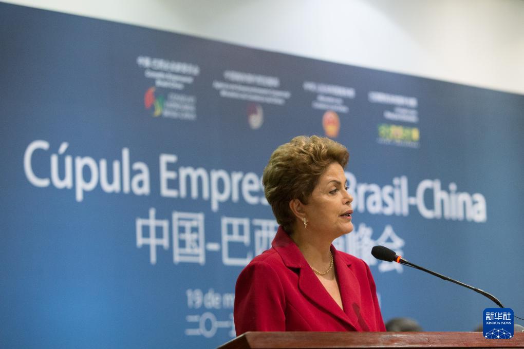 ??2015年5月19日,在巴西首都巴西利亞,時任巴西總統(tǒng)迪爾瑪·羅塞芙在中國—巴西工商峰會閉幕式上致辭。 新華社記者 徐子鑒 攝