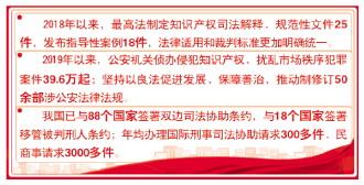人民法院、檢察機關(guān)深入研究新型經(jīng)濟犯罪相關(guān)問題,依法懲處破壞金融管理秩序、金融詐騙、危害稅收征管、侵犯知識產(chǎn)權(quán)等破壞社會主義市場經(jīng)濟秩序的違法犯罪行為,有案必立、有罪必罰。2019年以來,公安機關(guān)偵辦侵犯知識產(chǎn)權(quán)、擾亂市場秩序犯罪案件39.6萬起;堅持以良法促進發(fā)展、保障善治,推動制修訂50余部涉公安法律法規(guī)。