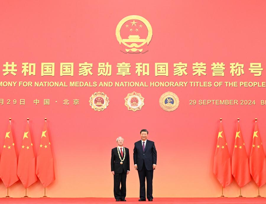 9月29日,中華人民共和國(guó)國(guó)家勛章和國(guó)家榮譽(yù)稱號(hào)頒授儀式在北京人民大會(huì)堂金色大廳隆重舉行。中共中央總書記、國(guó)家主席、中央軍委主席習(xí)近平向國(guó)家勛章和國(guó)家榮譽(yù)稱號(hào)獲得者頒授勛章獎(jiǎng)?wù)虏l(fā)表重要講話。