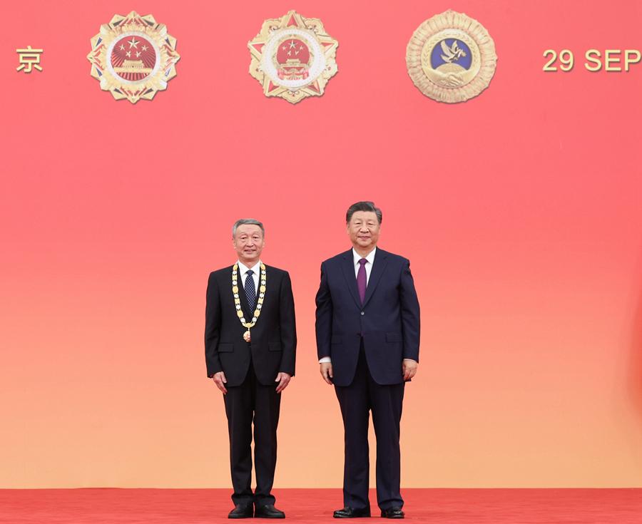 9月29日,中華人民共和國國家勛章和國家榮譽稱號頒授儀式在北京人民大會堂金色大廳隆重舉行。中共中央總書記、國家主席、中央軍委主席習近平向“人民工匠”國家榮譽稱號獲得者許振超頒授獎章。