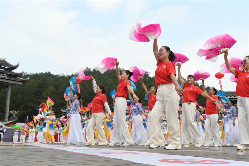 13日,參加活動(dòng)的隊(duì)伍走進(jìn)“村BA”發(fā)源地臺(tái)盤(pán)村,感受活力滿滿、熱氣騰騰的鄉(xiāng)村籃球賽的同時(shí),帶著廣場(chǎng)舞加入其中,參與墊場(chǎng)表演,為觀眾帶去歡樂(lè),點(diǎn)燃運(yùn)動(dòng)激情,傳遞體育正能量。