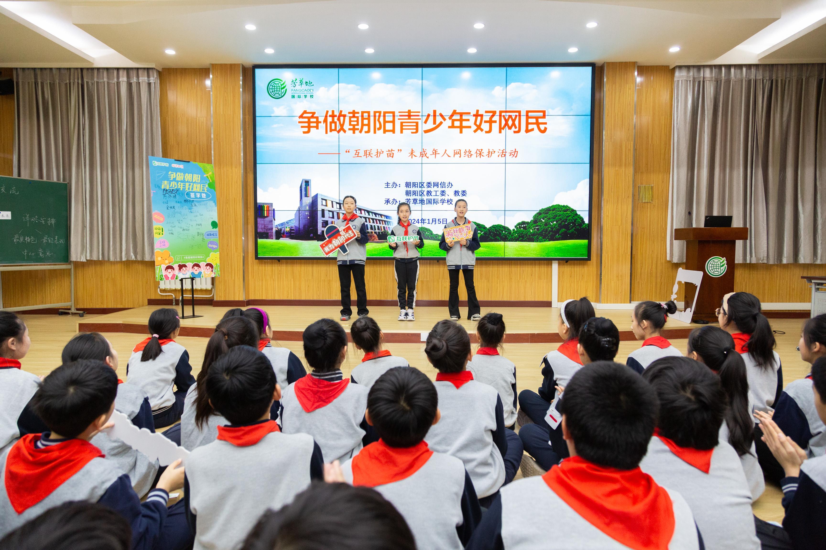 1月5日,北京市朝陽區(qū)委網(wǎng)信辦聯(lián)合朝陽區(qū)教工委、教委走進芳草地國際學校舉辦“爭做朝陽青少年好網(wǎng)民——‘互聯(lián)護苗’未成年人網(wǎng)絡保護”主題活動。