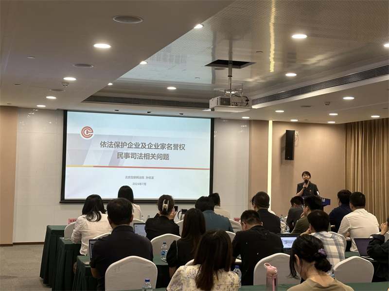 活動現(xiàn)場,北京互聯(lián)網法院審判委員會專職委員,三級高級法官孫銘溪圍繞企業(yè)名譽權、企業(yè)合規(guī)經營等內容,以案釋法、普法宣講。北京市委網信辦網絡輿情和舉報中心工作人員著重從涉企網絡侵權信息的舉報渠道選擇、舉報信息分類、舉報材料組織及相關注意事項等方面提出建議。