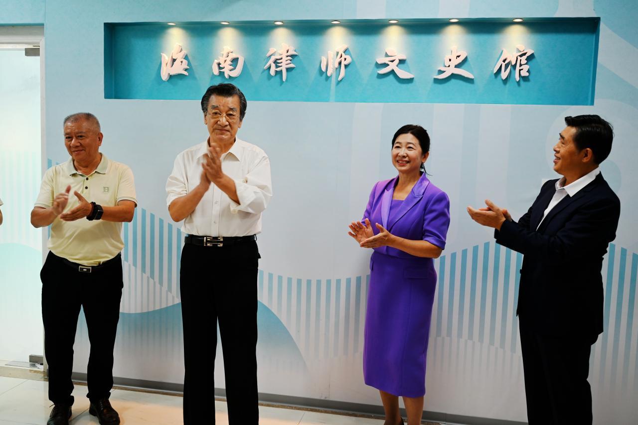 在海南自由貿(mào)易港法律周開幕之際,10月16日上午,海南律師文史館揭牌開館儀式在省律師協(xié)會舉行。省律師協(xié)會名譽(yù)會長王晶,省律師協(xié)會會長符瓊芬,省司法廳原二級巡視員吳少平,省律師協(xié)會監(jiān)事長劉寧剛出席儀式并共同揭牌。