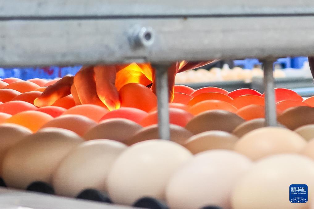 11月29日,在石門縣一家家禽加工企業(yè)碼蛋車間,工作人員在挑選雞蛋。