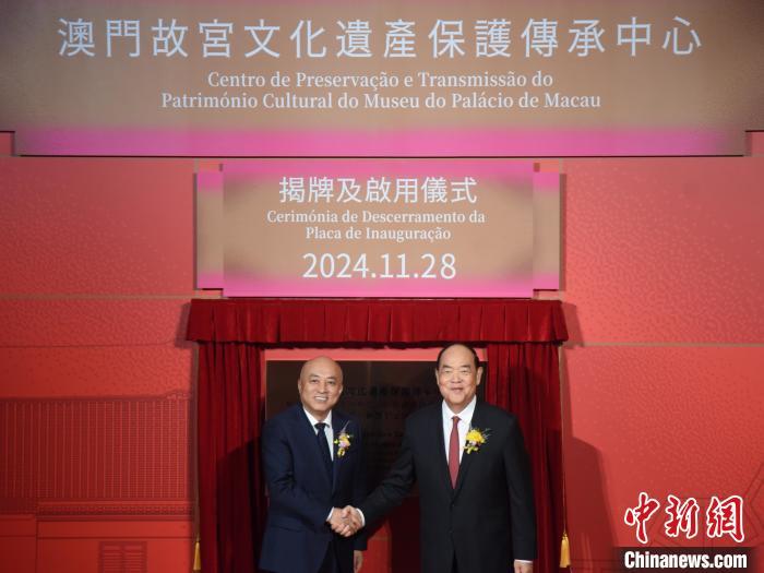 中新社澳門11月28日電(記者 鄭嘉偉)由澳門特區(qū)政府與中國文化和旅游部(文旅部)合作籌建的“澳門故宮文化遺產(chǎn)保護(hù)傳承中心”(下稱“中心”)28日下午舉行揭牌及啟用儀式,澳門特區(qū)行政長官賀一誠與故宮博物院院長王旭東共同為中心揭牌。