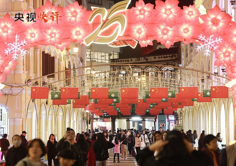 回歸祖國25年來,澳門的新發(fā)展、新變化隨處可見,具有澳門特色的“一國兩制”實踐取得了舉世公認的成功,展現(xiàn)出勃勃生機和獨特魅力。1999年至2023年,澳門人均本地生產(chǎn)總值由1.5萬美元增至6.9萬美元;經(jīng)濟適度多元發(fā)展不斷取得新成效,非博彩業(yè)在澳門本地生產(chǎn)總值中的比重正逐漸提升,到2023年已超過六成……實踐充分證明,“一國兩制”是符合國家、民族根本利益,符合澳門根本利益的好制度,具有強大生命力和巨大優(yōu)越性。
