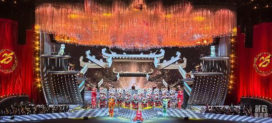 △慶祝澳門回歸祖國25周年文藝晚會現(xiàn)場燈光璀璨,歡樂喜慶。(總臺央視記者許永松拍攝)