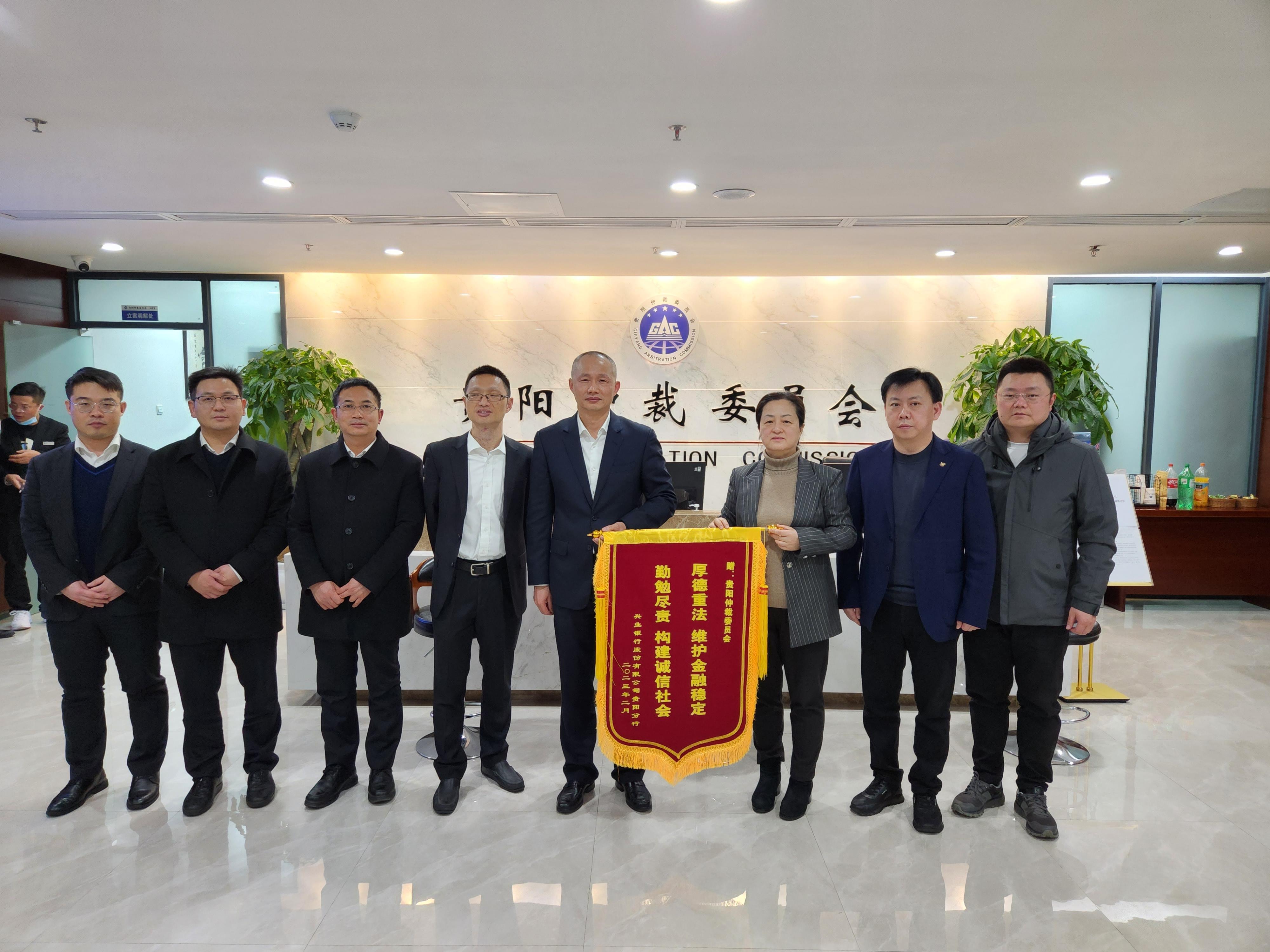 2023年2月23日,由于貴陽(yáng)仲裁委員會(huì)在興業(yè)銀行貴陽(yáng)分行設(shè)立信用卡仲裁調(diào)解中心以來(lái)協(xié)助后者高效解決大量糾紛,興業(yè)銀行貴陽(yáng)分行向貴陽(yáng)仲裁委員會(huì)贈(zèng)送錦旗表示感謝。