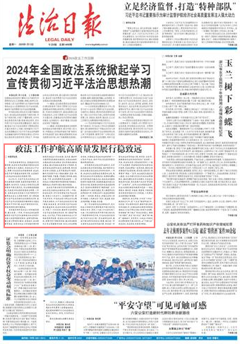 2024年1月,習近平總書記對政法工作作出重要指示強調,堅持黨的絕對領導,忠誠履職、擔當作為,以政法工作現(xiàn)代化支撐和服務中國式現(xiàn)代化,為全面推進強國建設、民族復興偉業(yè)提供堅強安全保障。一年來,各級政法機關堅持以習近平新時代中國特色社會主義思想為指導,深入貫徹落實習近平法治思想和總體國家安全觀,把習近平總書記的重要指示精神轉化為建設更高水平平安中國、法治中國的實際行動,護航高質量發(fā)展行穩(wěn)致遠。