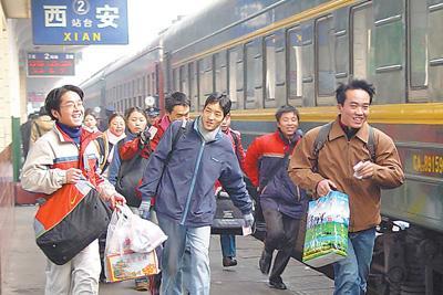 2004年,放假回家的大學(xué)生在西安火車站趕火車。焦宏濤攝(影像中國)
