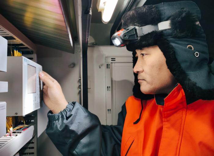 “天黑,大家注意腳下,防止滑倒,注意人身安全?!备邘r囑咐著工友,自己則一邊向前走,一邊觀察每一處設(shè)備外觀狀態(tài),走到138號(hào)道岔時(shí),他蹲下身子,從工具包里掏出扳手,開(kāi)始仔細(xì)地檢查每一處螺栓,發(fā)現(xiàn)一處關(guān)鍵螺栓有松動(dòng)跡象,他立即緊固好,呼出的熱氣在睫毛上凝結(jié)成冰碴,模糊了視線,他就趁著起身的間隙,用袖子匆匆擦一把。