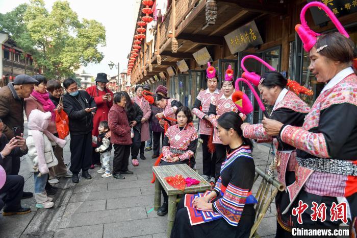 中新網(wǎng)福州1月21日電 (林晉如 劉其燚)“今天的活動真的太棒了!不僅能在集市上買各地的特產(chǎn),還能在溪尾街見識到這么多具有畬族民俗特色的東西,真是大開眼界?!?1日,羅源人林心揚(yáng)在福建省福州市羅源縣鳳山鎮(zhèn)溪尾街歷史文化街區(qū)游玩時(shí)說。